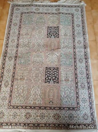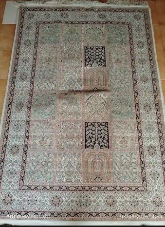 Handcrafted in the heart of Kashmir, this exquisite silk cotton carpet is a masterpiece of traditional artistry and timeless elegance. Meticulously woven by skilled artisans, each rug blends the subtle sheen of pure silk with the soft resilience of high-quality cotton, creating a lustrous surface and a luxuriously soft feel underfoot.Featuring intricate, hand-knotted designs inspired by Kashmiri nature motifs and Mughal heritage, every carpet is a unique work of art. The harmonious blend of vibrant colors and delicate patterns adds sophistication and warmth to any interior, whether used as a statement piece in a living room or a refined accent in your bedroom.Durable yet incredibly soft, this sustainable carpet not only elevates your décor but also preserves generations-old craftsmanship. Owning a Kashmir silk-cotton handmade carpet brings home a touch of timeless beauty and an enduring legacy of weaving tradition.