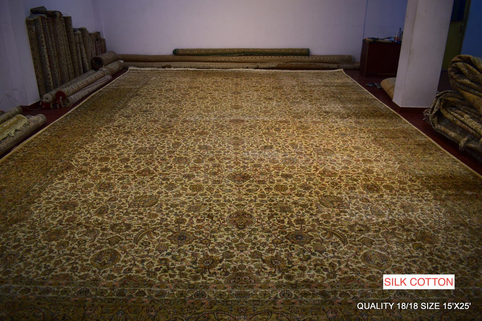 Handcrafted in the heart of Kashmir, this exquisite silk cotton carpet is a masterpiece of traditional artistry and timeless elegance. Meticulously woven by skilled artisans, each rug blends the subtle sheen of pure silk with the soft resilience of high-quality cotton, creating a lustrous surface and a luxuriously soft feel underfoot.Featuring intricate, hand-knotted designs inspired by Kashmiri nature motifs and Mughal heritage, every carpet is a unique work of art. The harmonious blend of vibrant colors and delicate patterns adds sophistication and warmth to any interior, whether used as a statement piece in a living room or a refined accent in your bedroom.Durable yet incredibly soft, this sustainable carpet not only elevates your décor but also preserves generations-old craftsmanship. Owning a Kashmir silk-cotton handmade carpet brings home a touch of timeless beauty and an enduring legacy of weaving tradition.